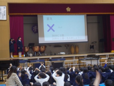 保育園・幼稚園との交流 2025/11/19 11月19、20日の2日間は、近隣の保育園や幼稚園を学校に招待しました。 今週末に音楽会があるということ... 5年生 中央区観光協会授業 2025/11/18 中央区観光協会の方を講師としてお招きしました。 観光協会の仕事内容や中央区のことを詳しく教えてもらいまし... 環境委員会 2025/11/17 環境委員会は、石鹸の補充をしたり、健康を呼びかけるポスター作りをしたりしています。校内の環境を整えることも今...